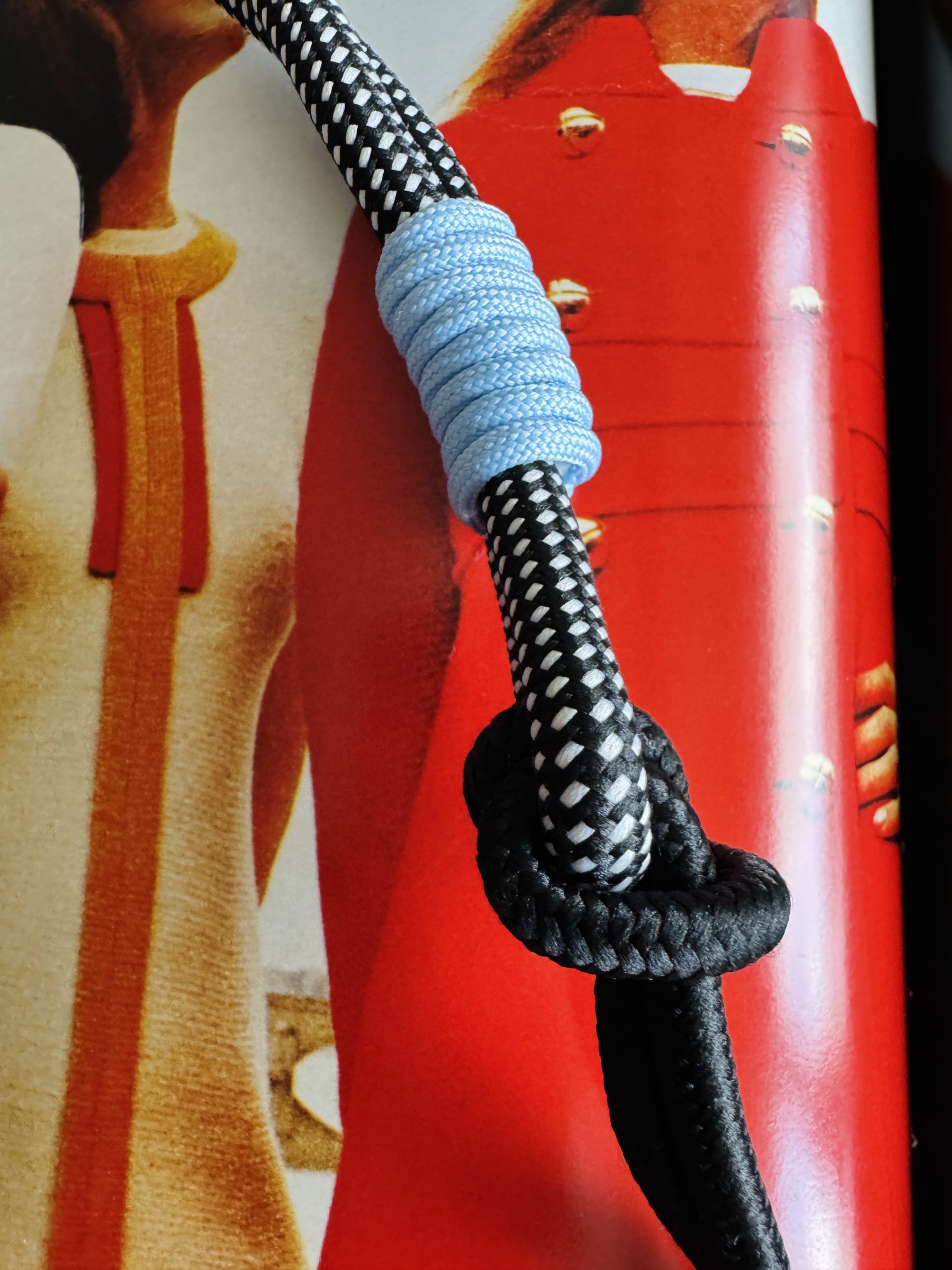 Asa corta de nudos trenzada de cuerda y nylon.