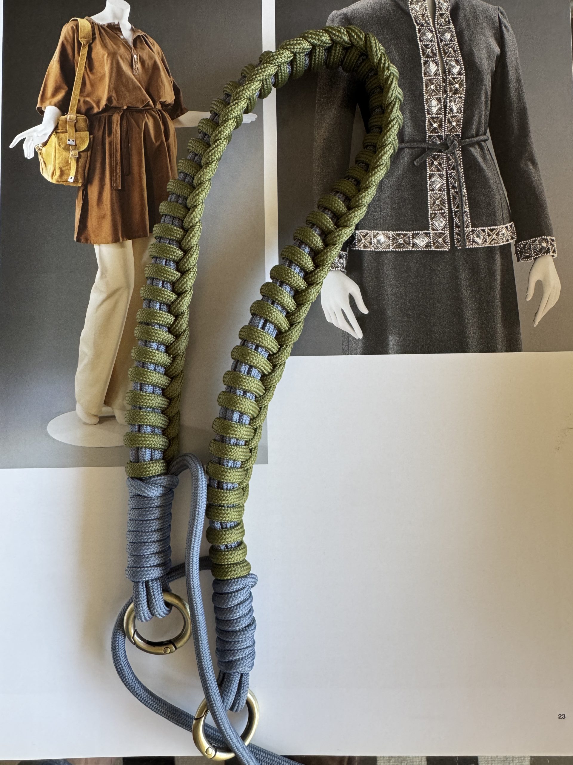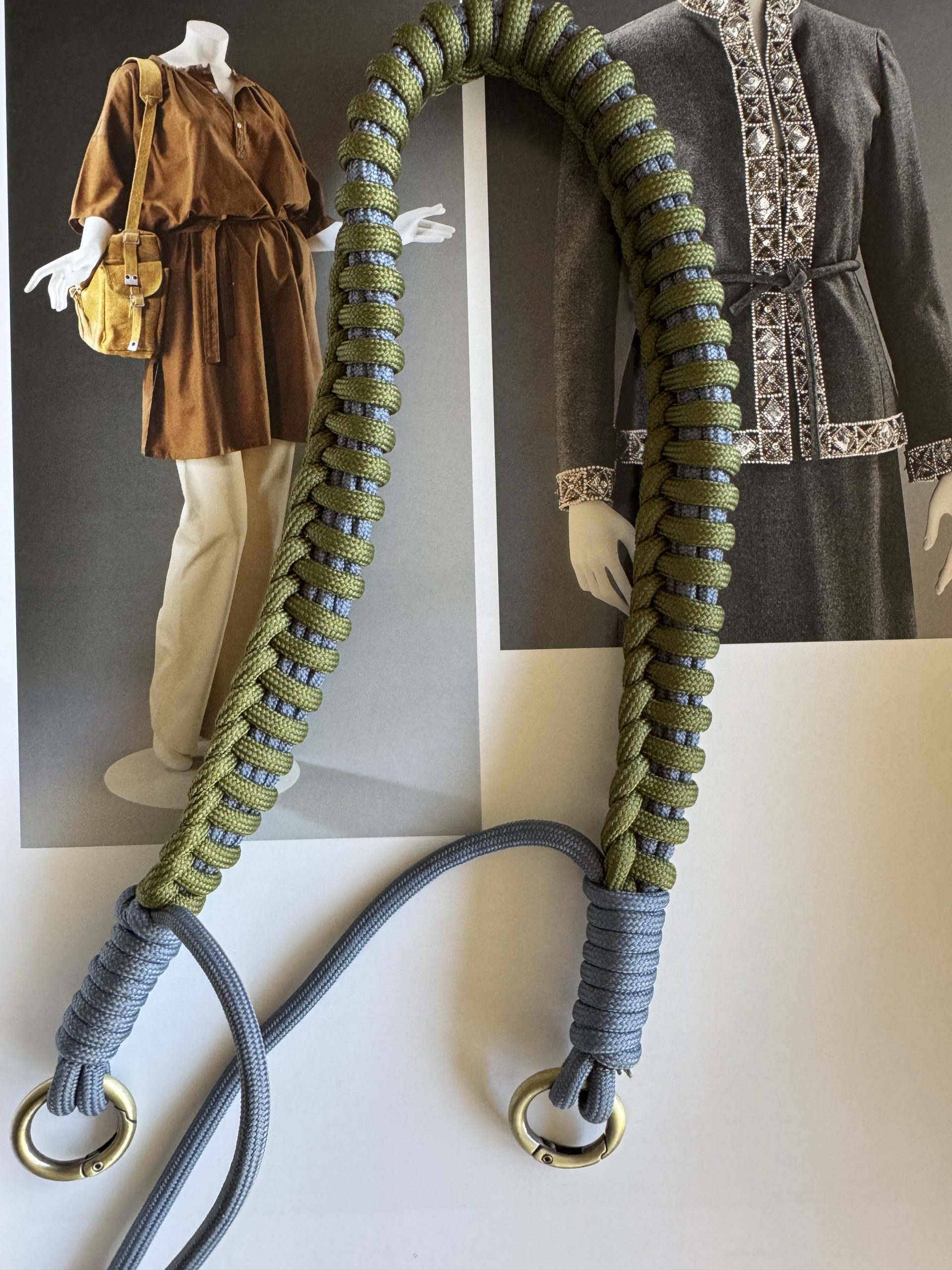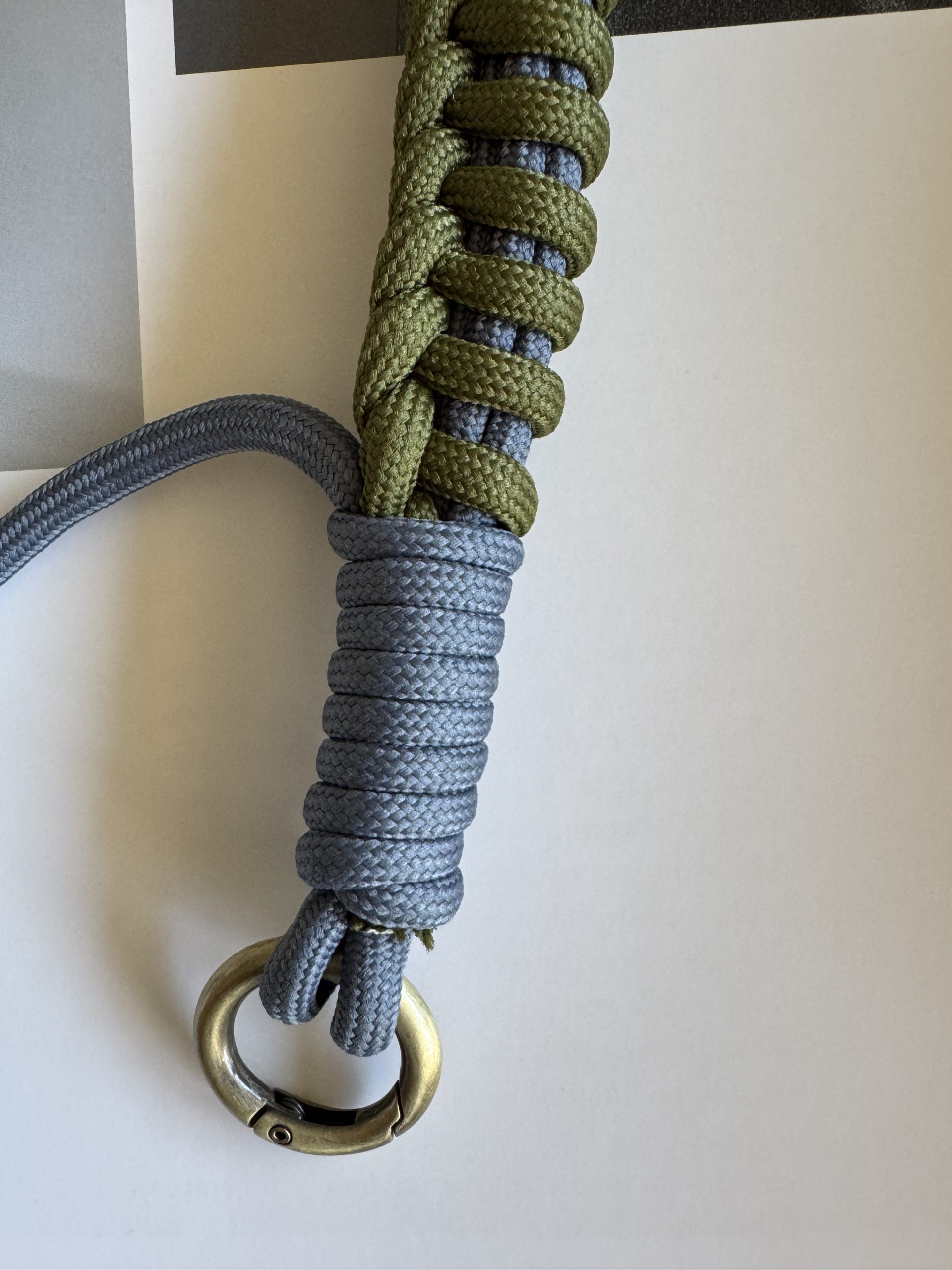 2 colores de cuerda paracord, verde oliva y gris.