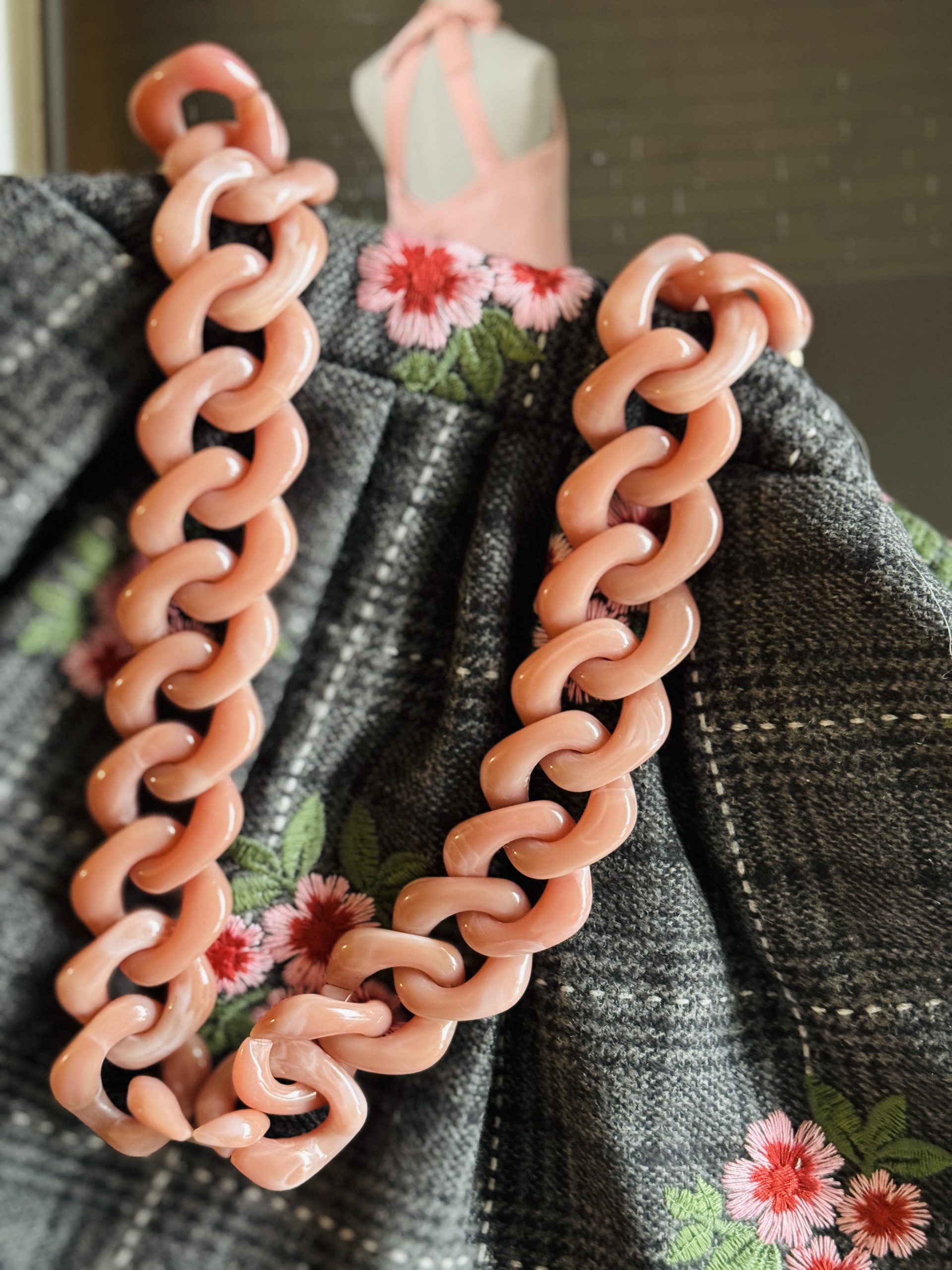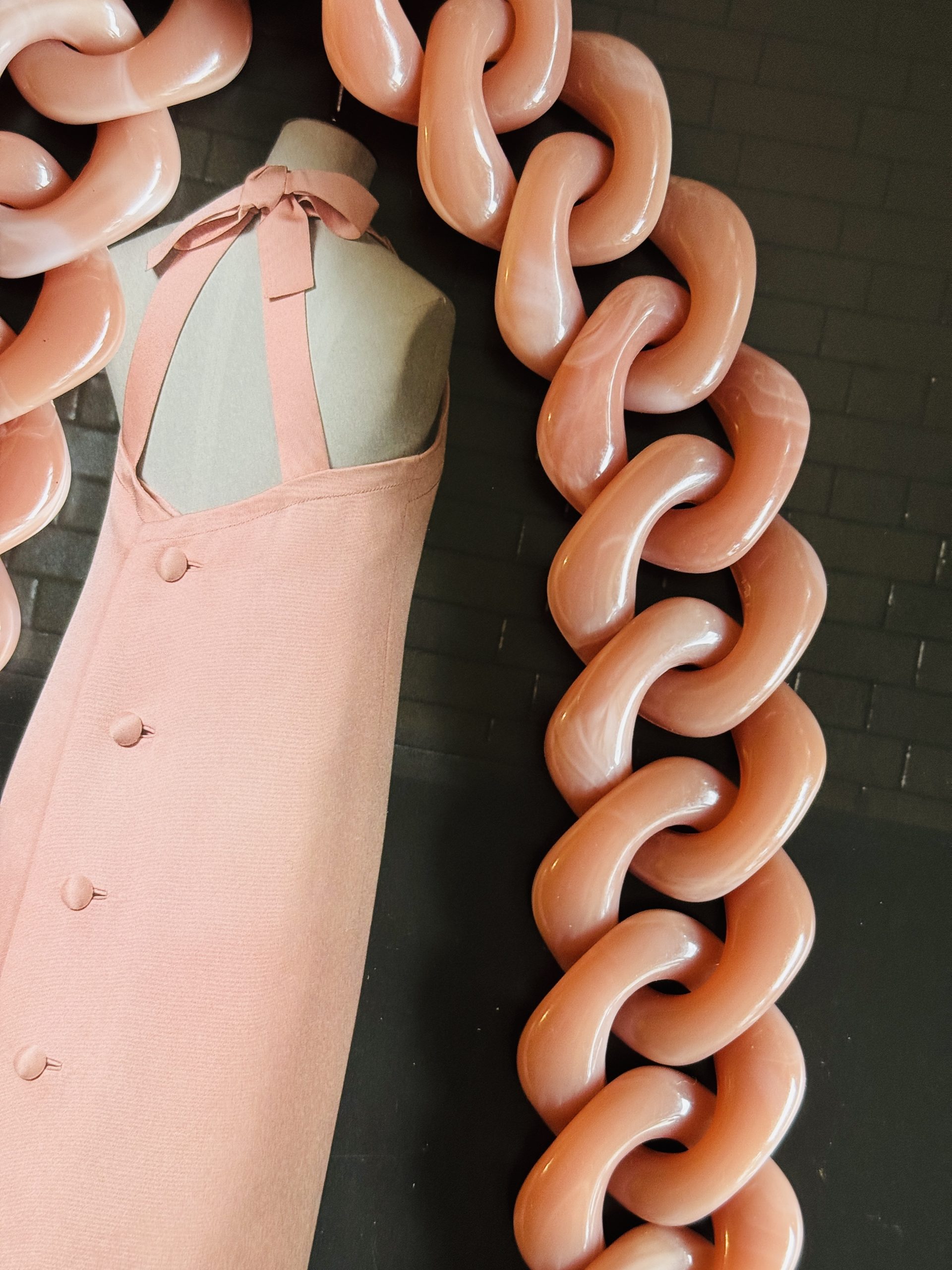 Asa de eslabones grandes en tono rosa empolvado con mosquetones dorados.