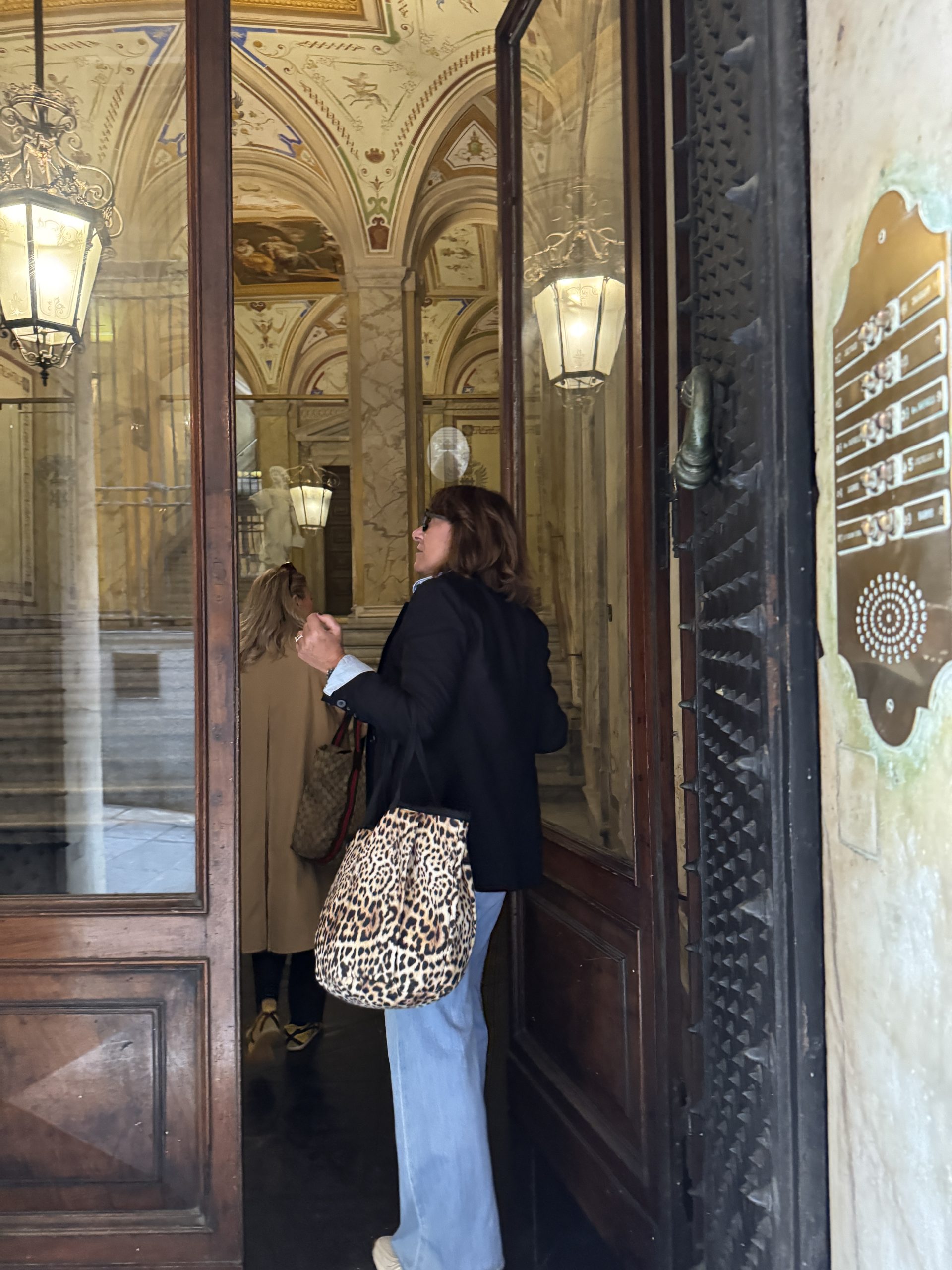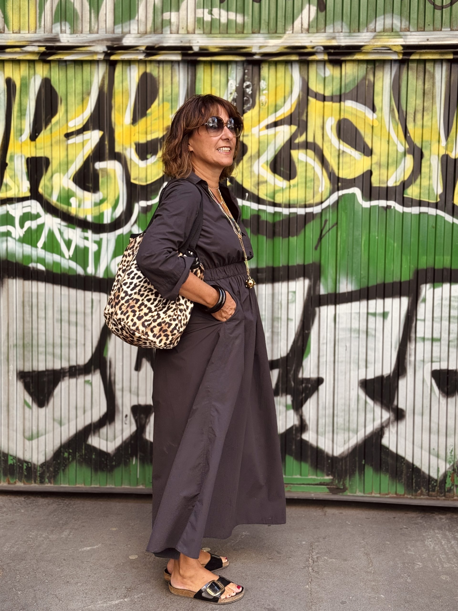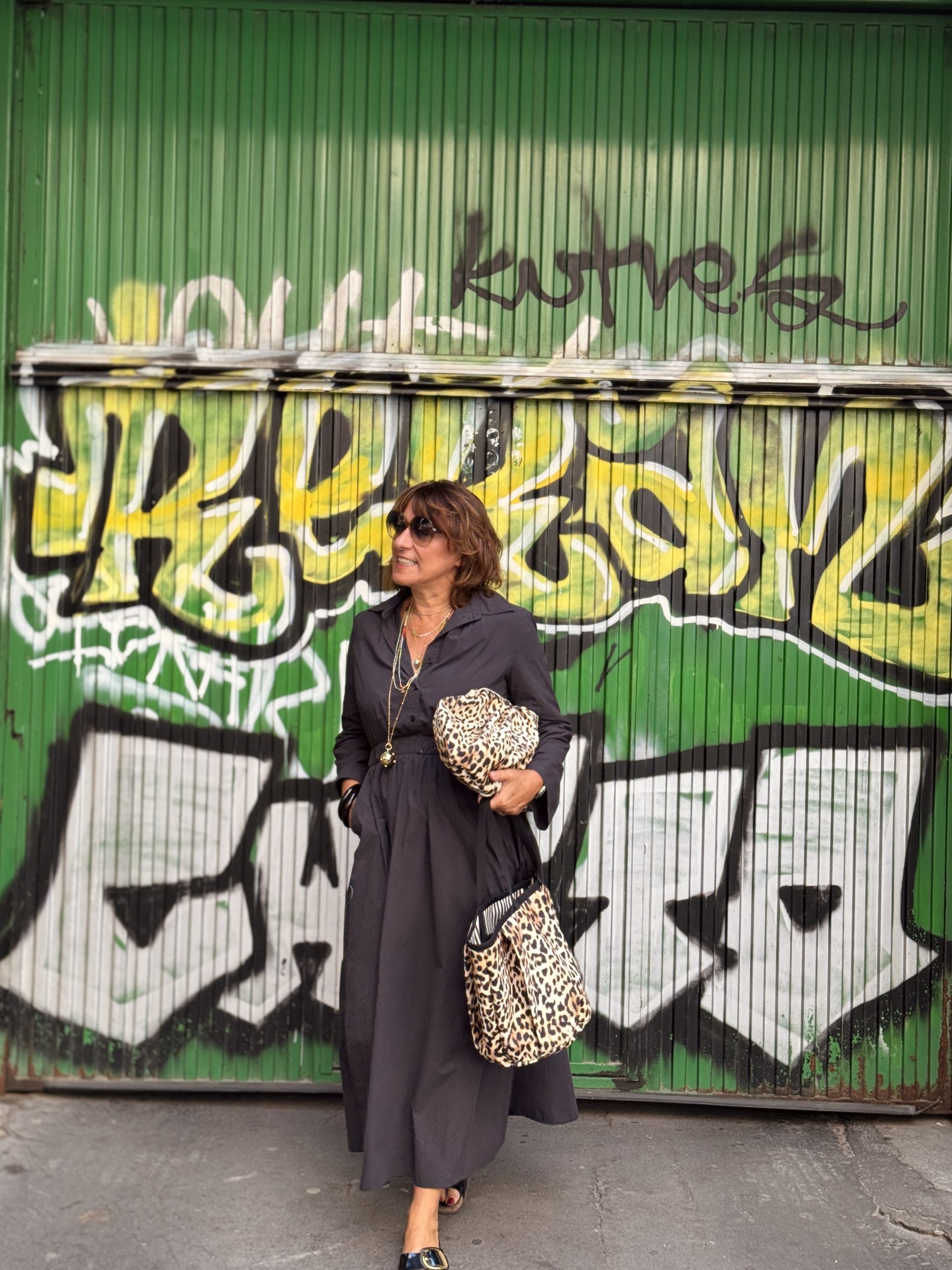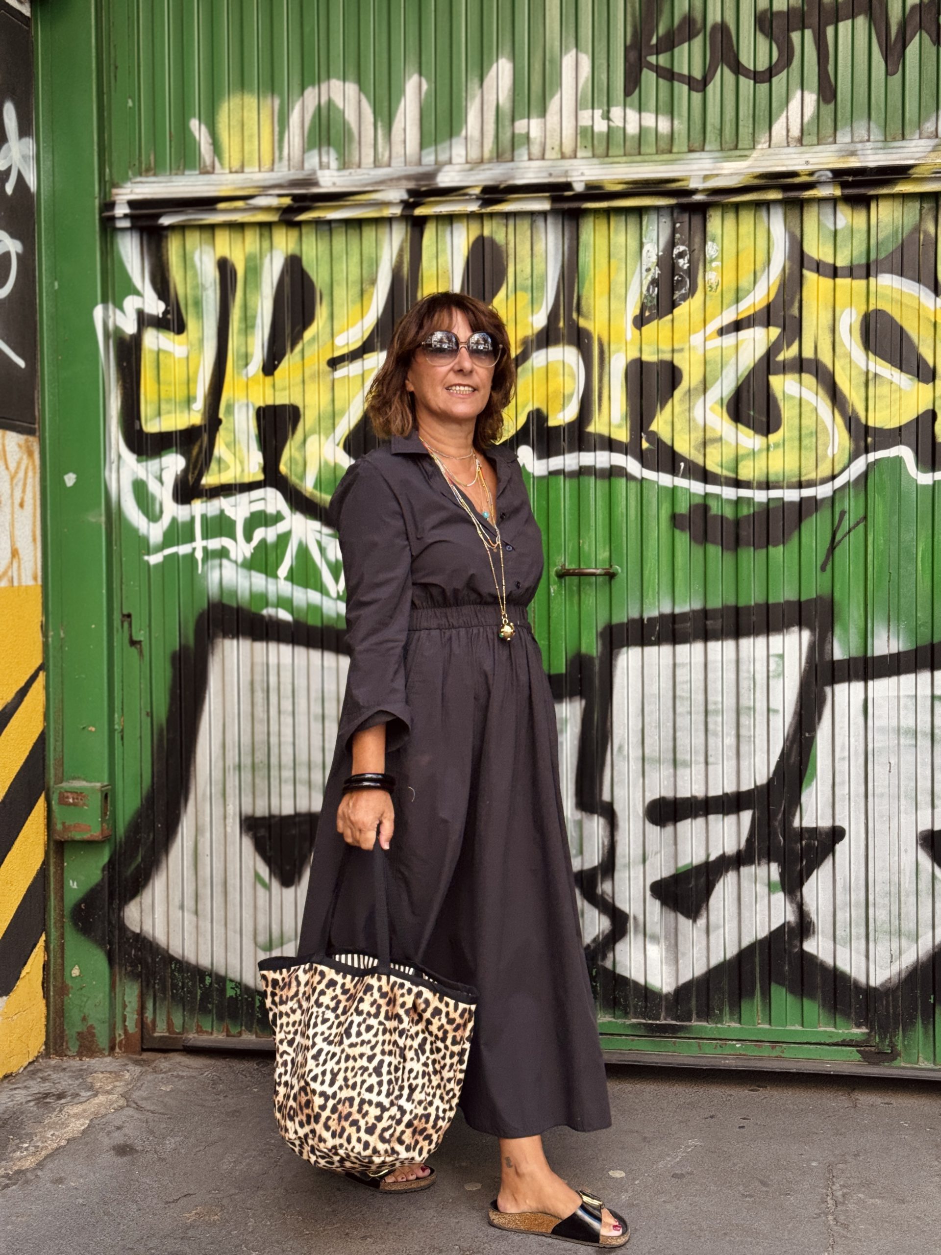 Tela en terciopelo animal print, forro rayas blancas y negras en algodón 100 x 100, bolsillo interior, asas en algodón negro.