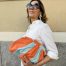 Tela rayas blancas y negras anchas en algodón 100 x 100, forro cuadros de vichy blanco y negro, asas en algodón flúor, amarillo o rosa. Bolsillo interior.