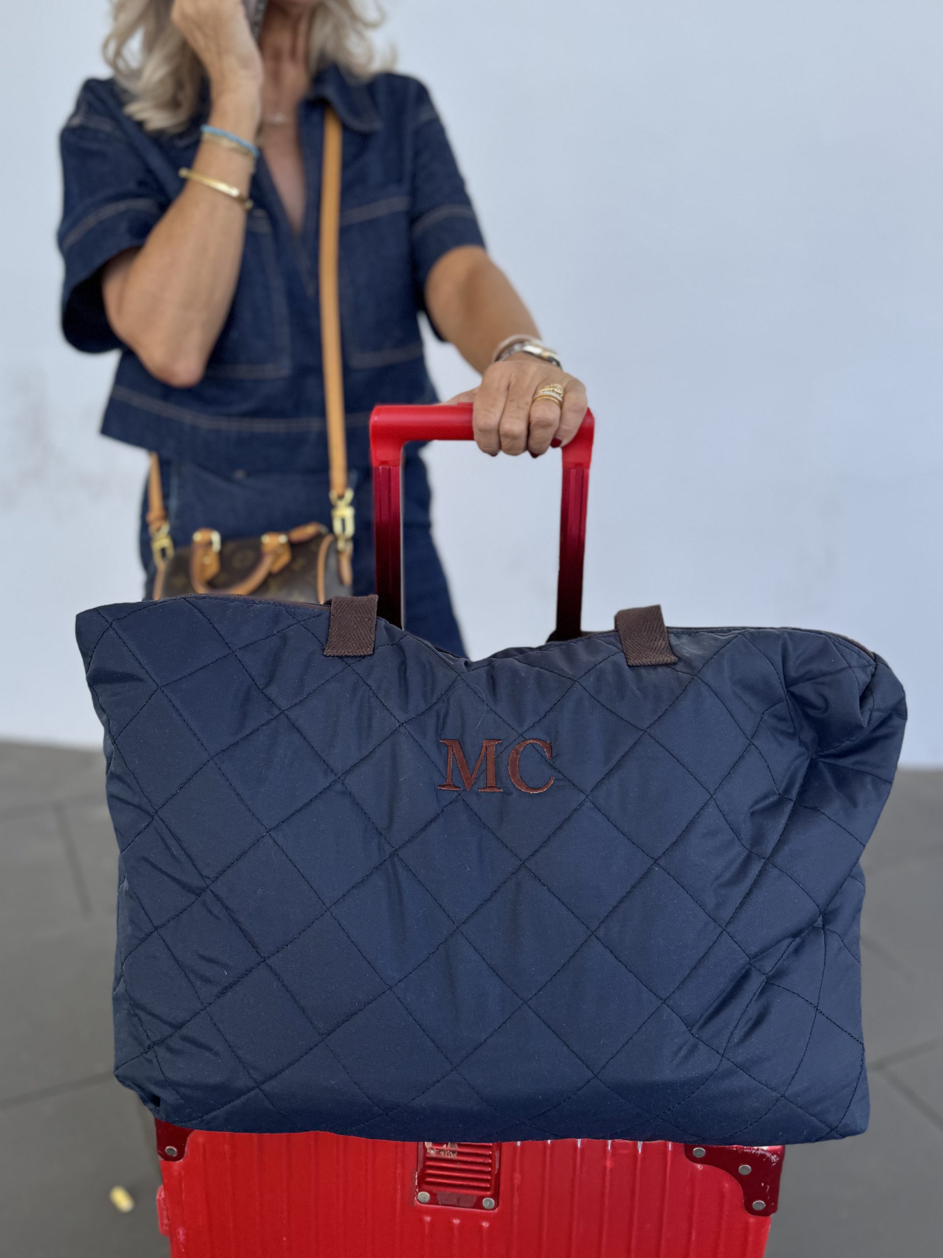 Disponible en una gana de colores neutros y elegantes, cada bolsa puede personalizarse con tus iniciales, para hacerla única y atemporal.