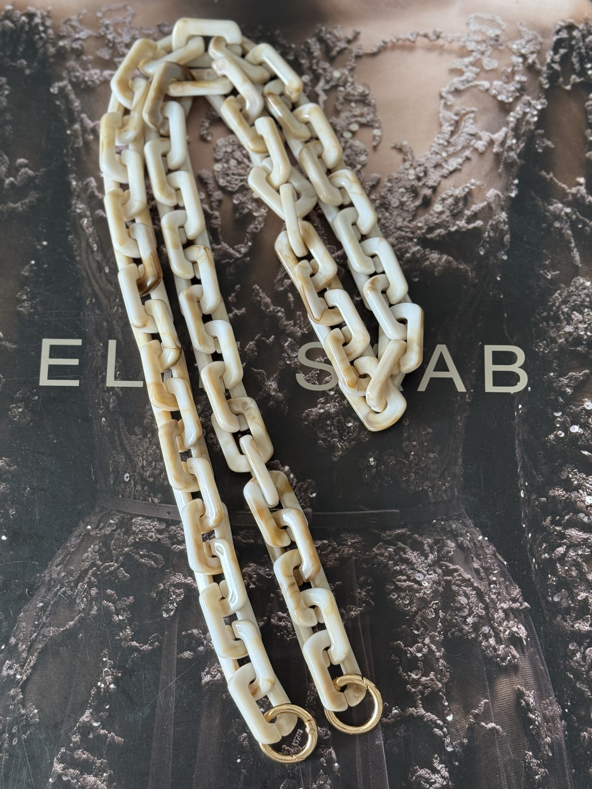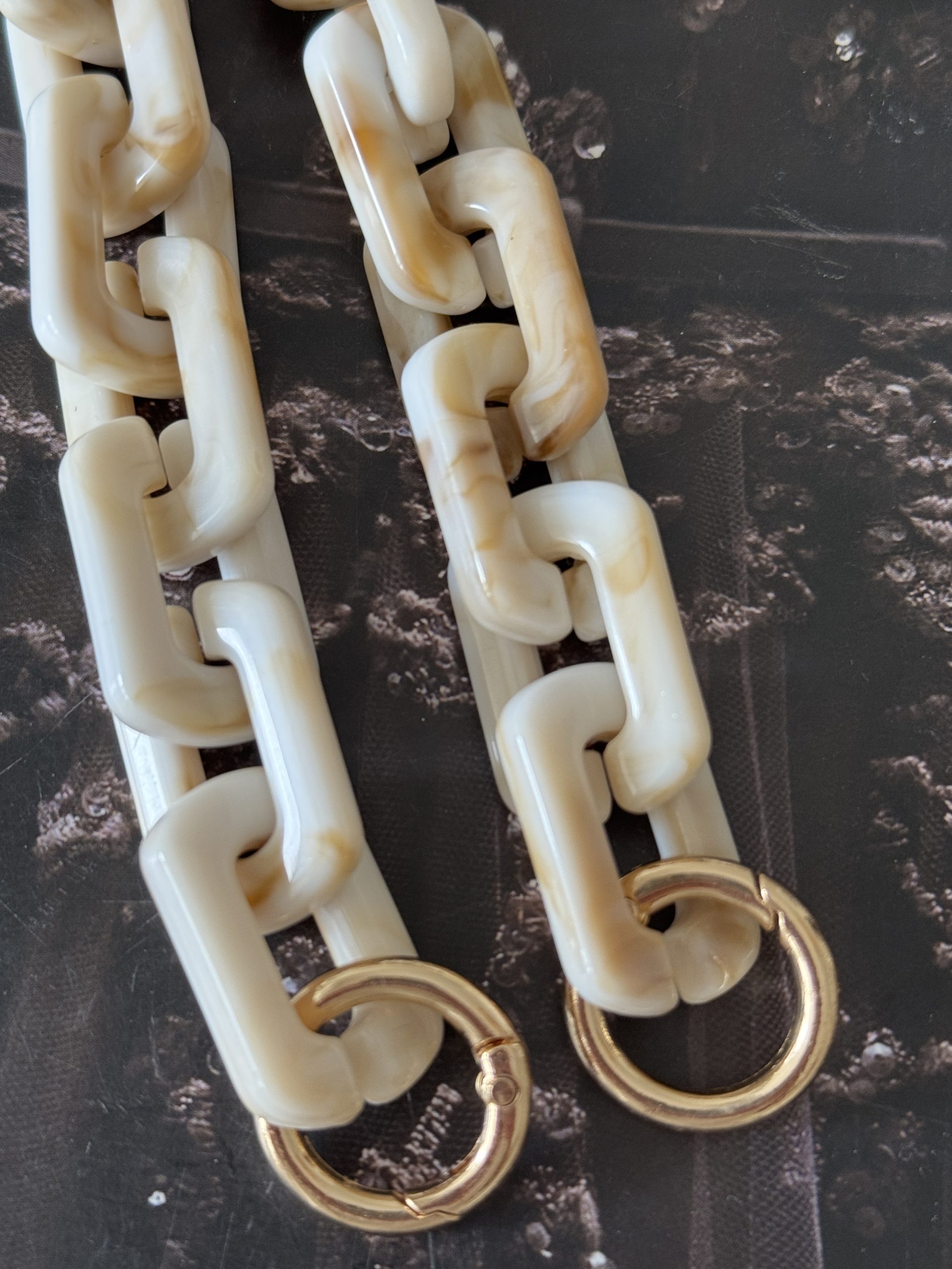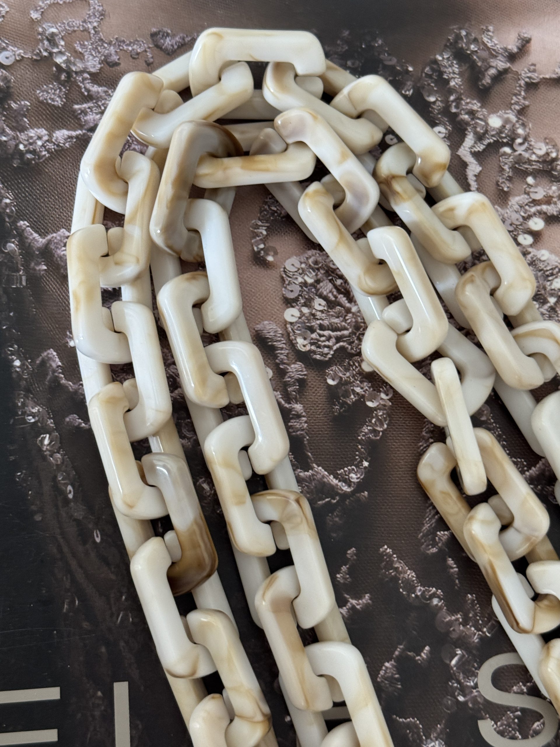Cadena de resina ligera color beige marmolado, ideal para usarla como asa de nuestras.