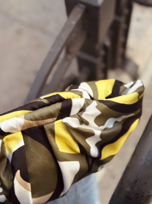Tela de satén en animal print color verede con manchas en colores negros, blancos y fucsia. Forro grueso en algodón color fucsia, bolsillo interior. Tiene unas tablillas para poner un asa de quita pon.