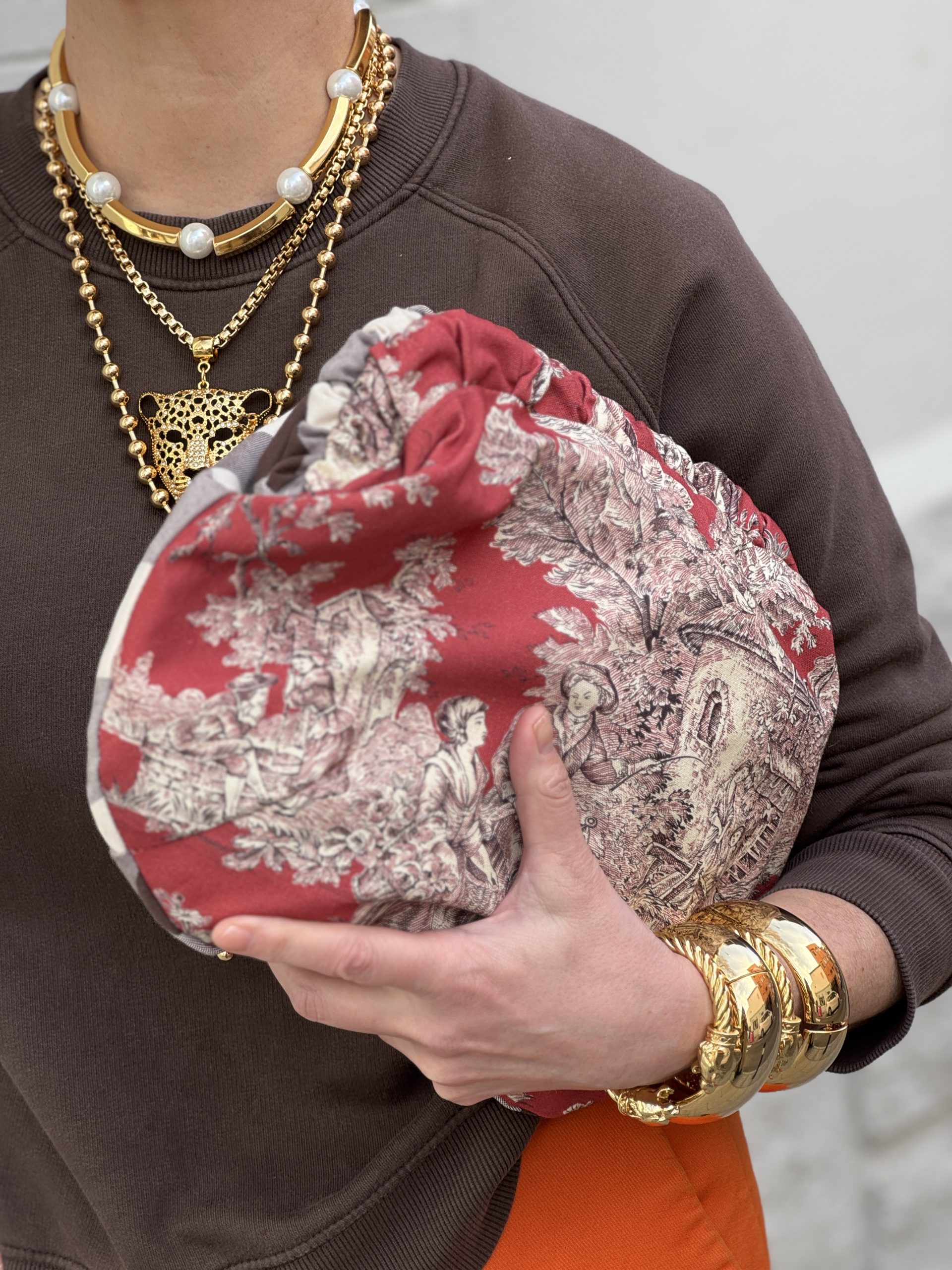 Medidas: 25cms x 28cms Cierre de boquilla metálica forrada.